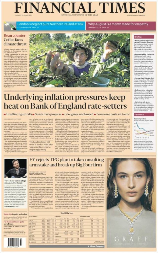 17-Ago Buenos Días Suscriptores. Tapa de Diarios Financieros