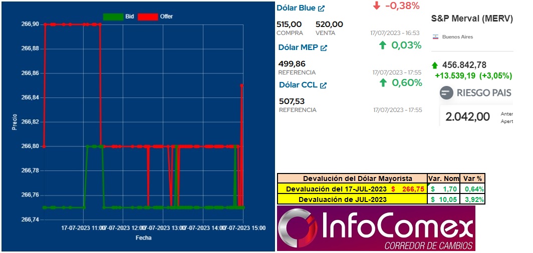 17-Jul MUCL $ 266,75 Cierre Dólar Oficial. Merval – Riesgo País – Dólares Financieros