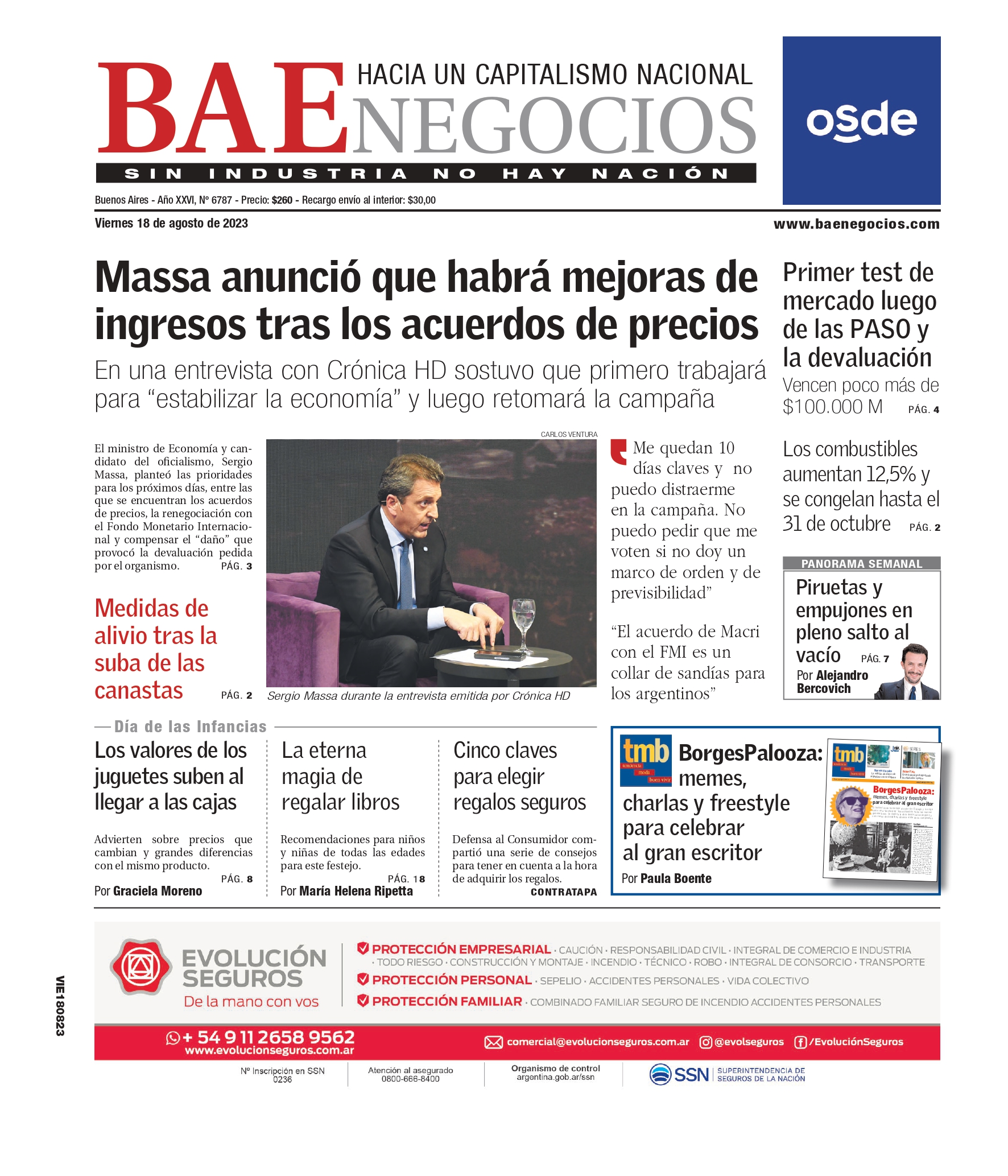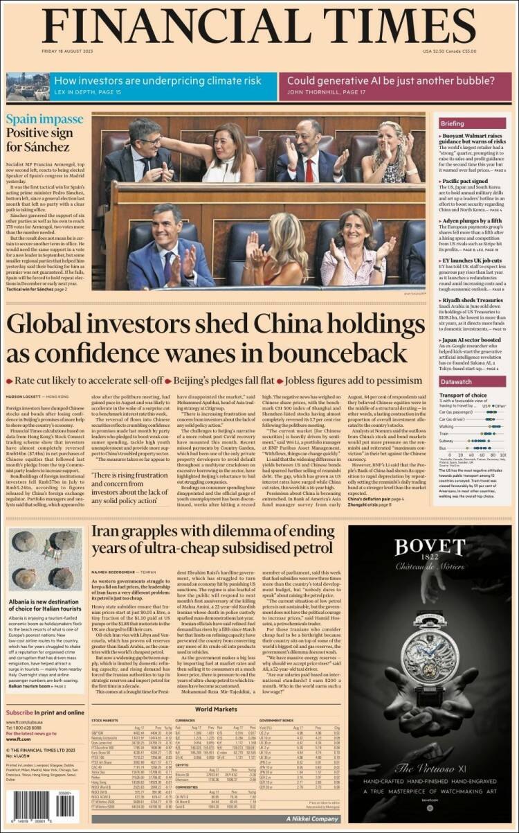 18-Ago Buenos Días Suscriptores. Tapa de Diarios Financieros