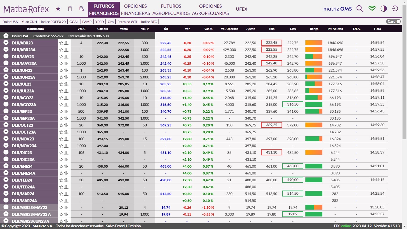 12-Abr: Dólar Futuro: $ 431,10 a Fin Dic. y $ 490,00 Pagan Feb-2024