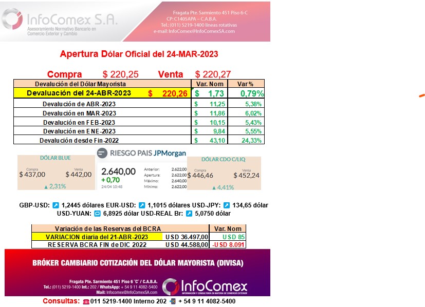- Consulta: ☎011-5219-1400 interno 202 / 📧 Oscar@InfoComexSA.com