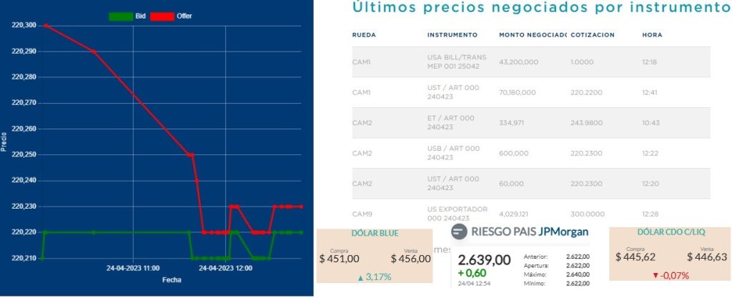 Dólar Oficial: $ 220,22 – Dólar Blue: $ 456 – Dólar CCL: $ 4446,63 – Dólar AGRO: USD 4,02mm