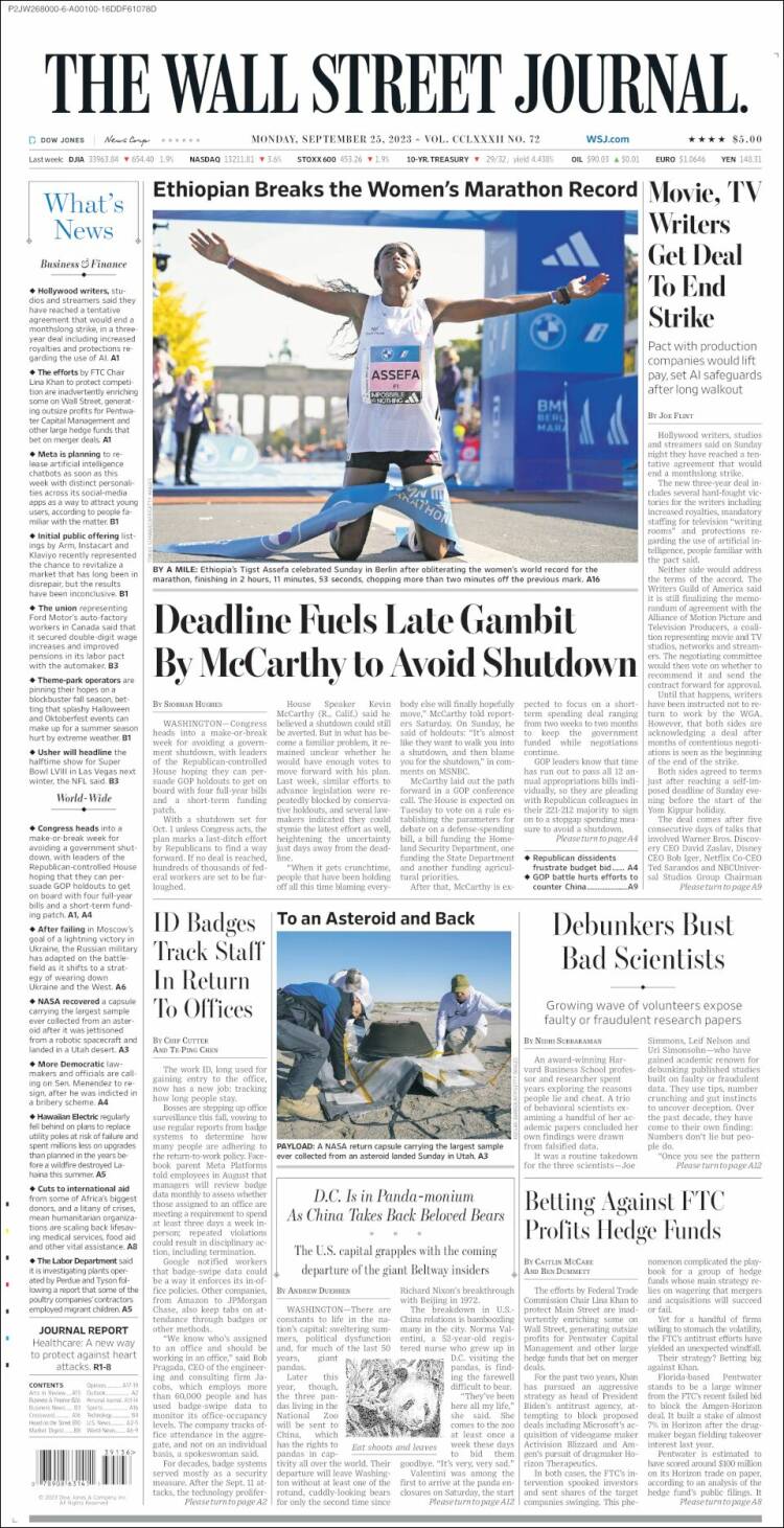 25-Sept Buenos Días Suscriptores. Tapa de Diarios Financieros