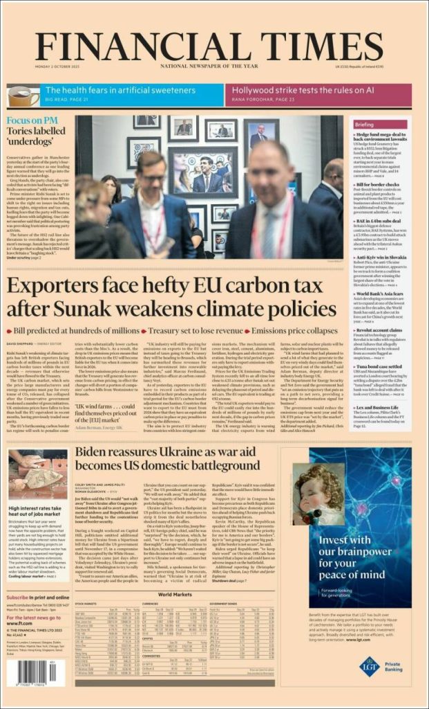 02-Oct Buenos Días Suscriptores. Tapa de Diarios Financieros