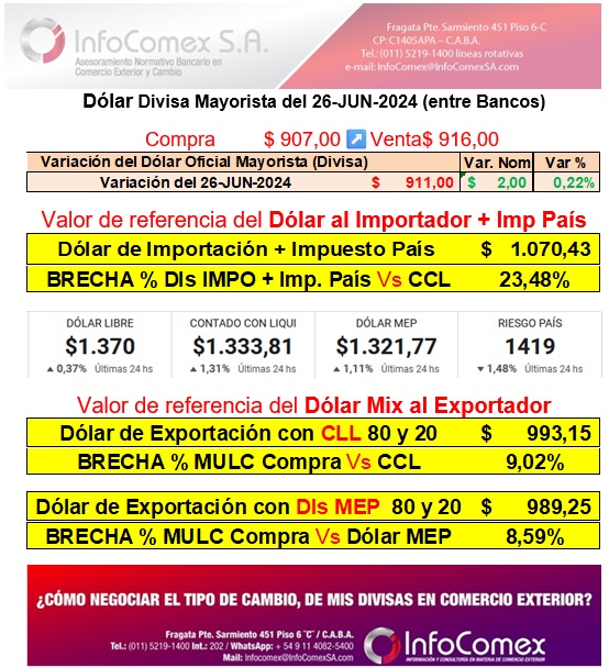 - Consulta: ☎011-5219-1400 interno 202 / 📧 Oscar@InfoComexSA.com / 📲 + 54 9 11 4082-5400