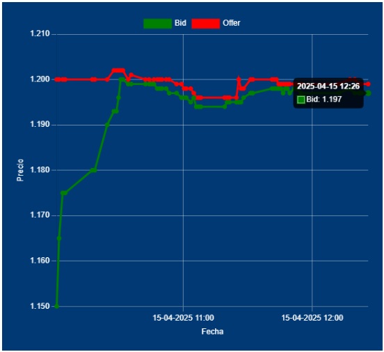 📌 15,00 hs Cotización de Referencia del Dólar Divisa: se nota que hay una fuerte resistencia, cuando superó los $ 1200,00