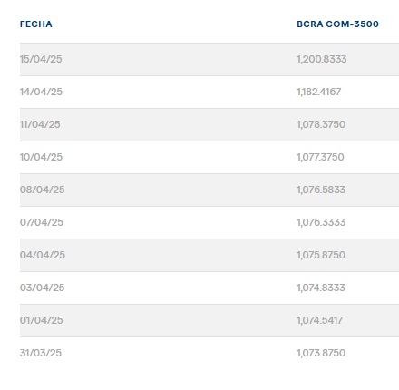 📌 COTIZACIÓN 💵 COM A 3500 del 15-ABR-2025 del BCRA