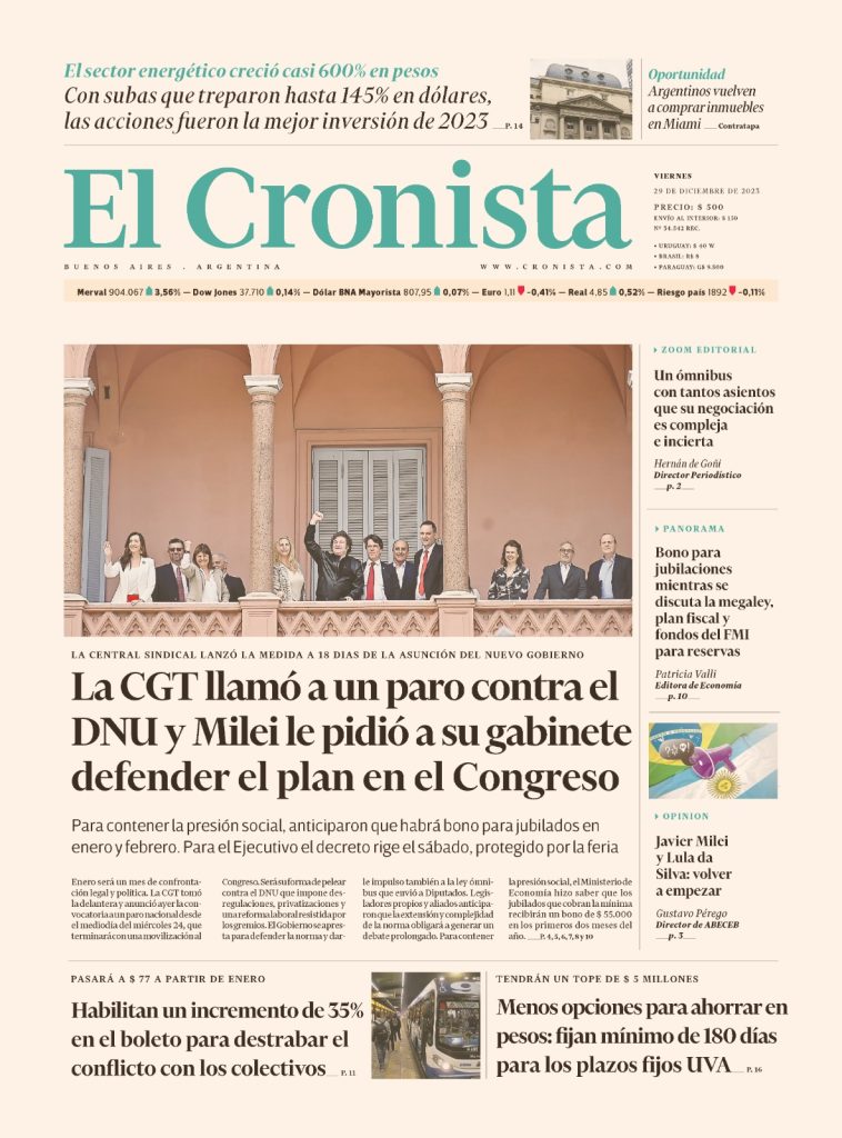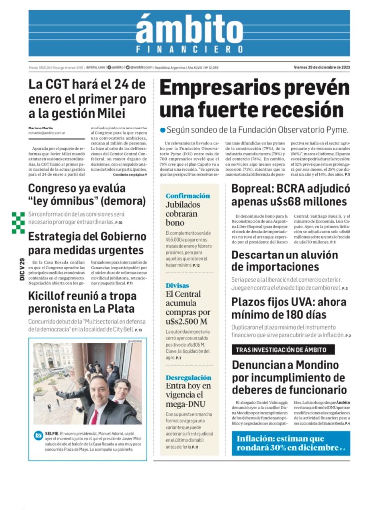 🇦🇷🧉🇦🇷 29-Dic: Buenos Días Suscriptores. Tapa de Diarios Financieros