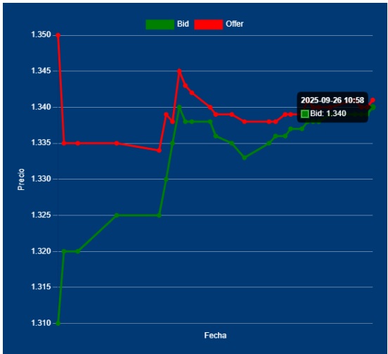 📌📉12,30 Hs Cotización del MULC – Dólar Divisa: Bid 1329,00 Offer 1330,00 cotización entre Bancos. Baja leve, dado que empezó haber algo más de EXPO, pero se neutraliza con las IMPO, consideran un valor razonable. Hay una interesante puja en el MULC entre EXPO e IMPO, dependiendo en el momento quien aparece primero