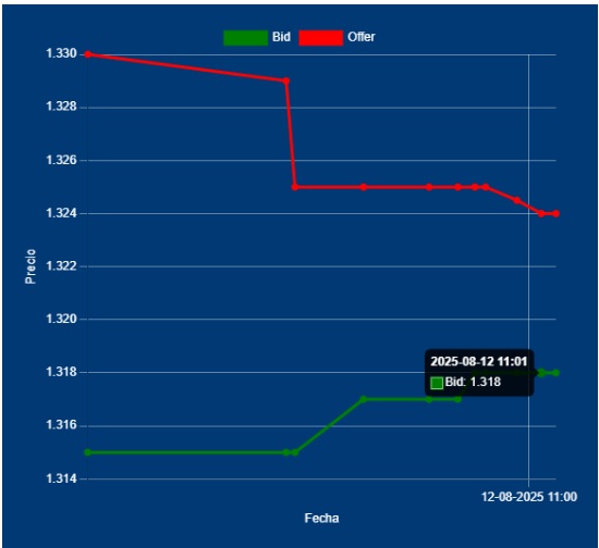 📌📉12,30 Hs Cotización del Dólar Divisa: Bid 1316,00 Offer 1317,00 cotización entre Bancos. Continua, valores de la apertura. Exportando liquidando, en función a sus compromisos. Importadores, aprovechando esta nivel de compra.