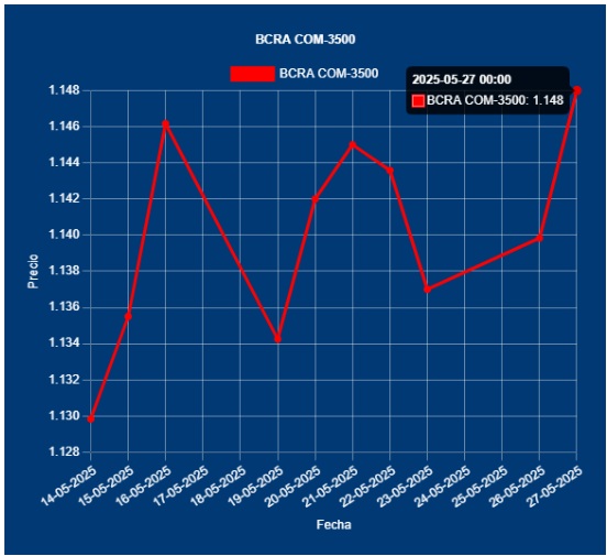 📌 $ 1.148,00 📈COTIZACIÓN 💵 COM A 3500 del 27-MAY-2025 del BCRA ¿cómo se obtiene?