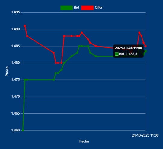 📌 11,00 Hs Apertura del MULC – Dólar Divisa: Bid 1483,50 Offer 1485,00 cotización entre Bancos. Los valores reflejados, son producto de la intuición que pone en función al resultado electoral del 26-O. Los que dicen que el oficialismo obtiene un resultado favorable, lo ven en 📉baja; y los que dicen que el resultado no es positivo, lo ven en suba📈 Hoy se cierra cambio, en función, a intuición de cada ejecutivo.