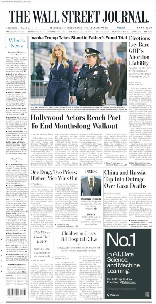 09-Nov Buenos Días Suscriptores. Tapa de Diarios Financieros