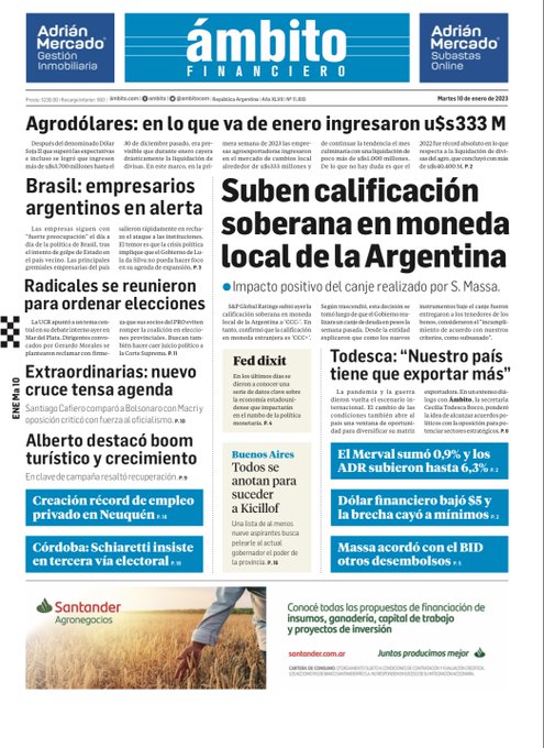 10-Ene Portales de Noticias. S&P saca a Argentina del default selectivo