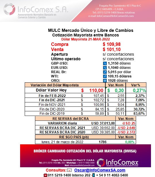 - Dólar Mayorista: el mercado está esperando, si el BCRA va convalidar otra suba similar al Viernes. No hay registro de operaciones, en 20’ de mercado