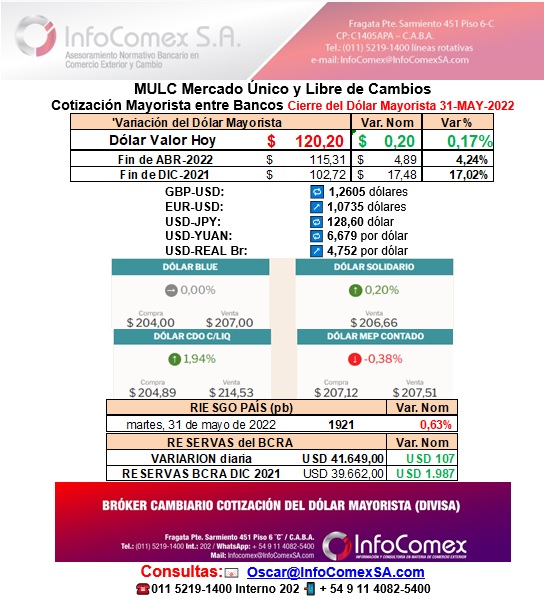 - Dólar Mayorista: cierra Mayo 4,24% de devaluación, y 17,02% en el 2022