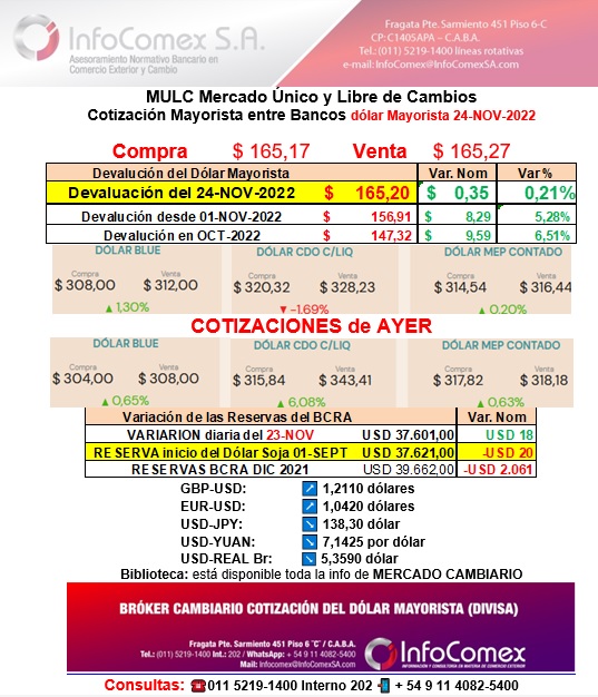 - Dólar Mayorista: Por el Feriado en EEUU (Día de Acción de Gracias) el mercado tardará en armarse.