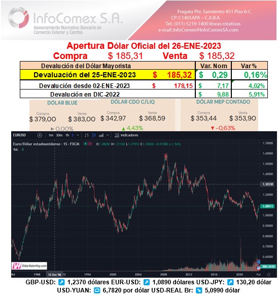 - Dólar Oficial: USD 22 millones concertado en 90’ de mercado.