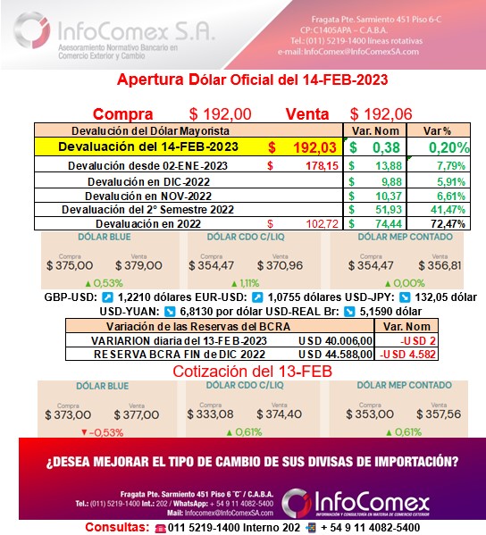 - Venta del BCRA: vende USD 50 millones promedio por día, y son 480 millones de ventas netas, en lo que va de Febrero