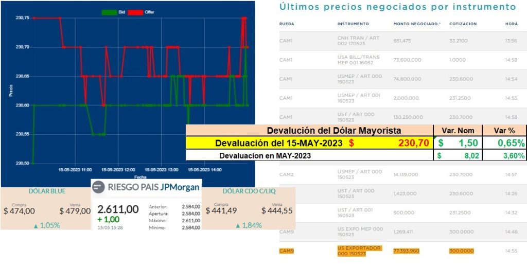 15-May Dólar Futuro: $ 343 AGO-2023, $ 547 Fin Dic-2023 y $ 770 Fin de Abr-2024