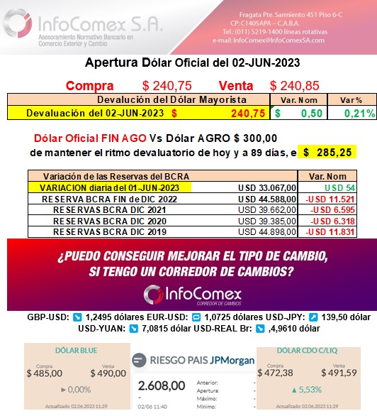 El BCRA está incrementado la devaluación diaria, por tal motivo entendemos que es momento para que obtengan un Tipo de Cambio acorde a la oscilación del momento. Más de 125 Empresas, nos avalan