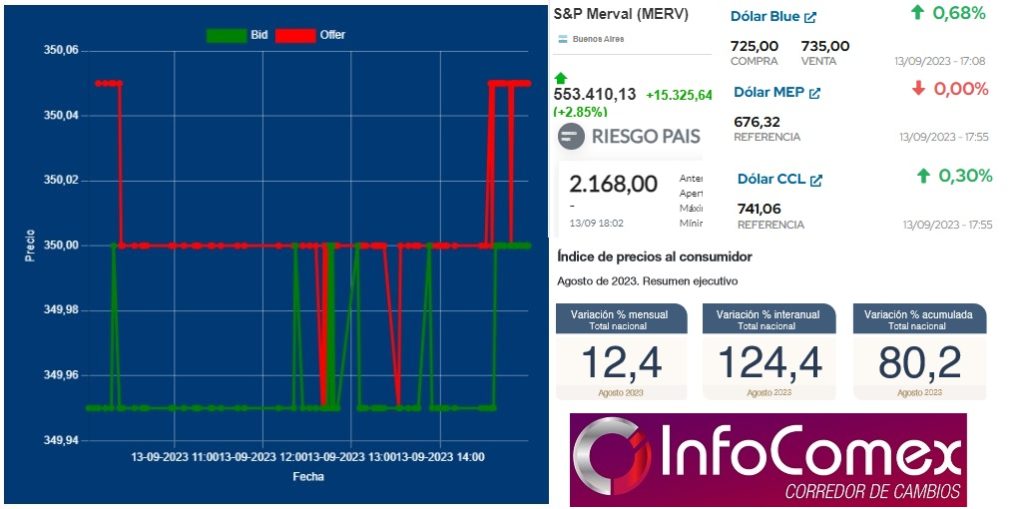 13-SEPT MULC $ 350,00 Cierre Dólar Oficial. Merval – Riesgo País – Dólares Financieros