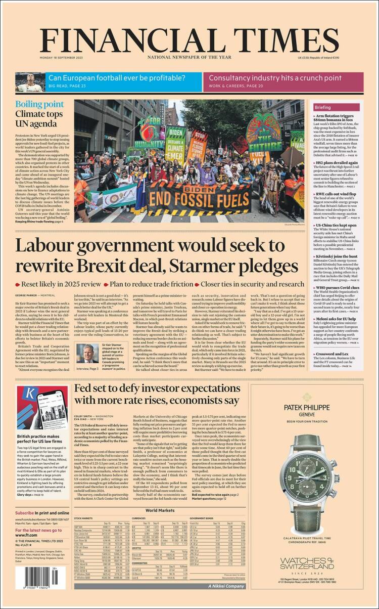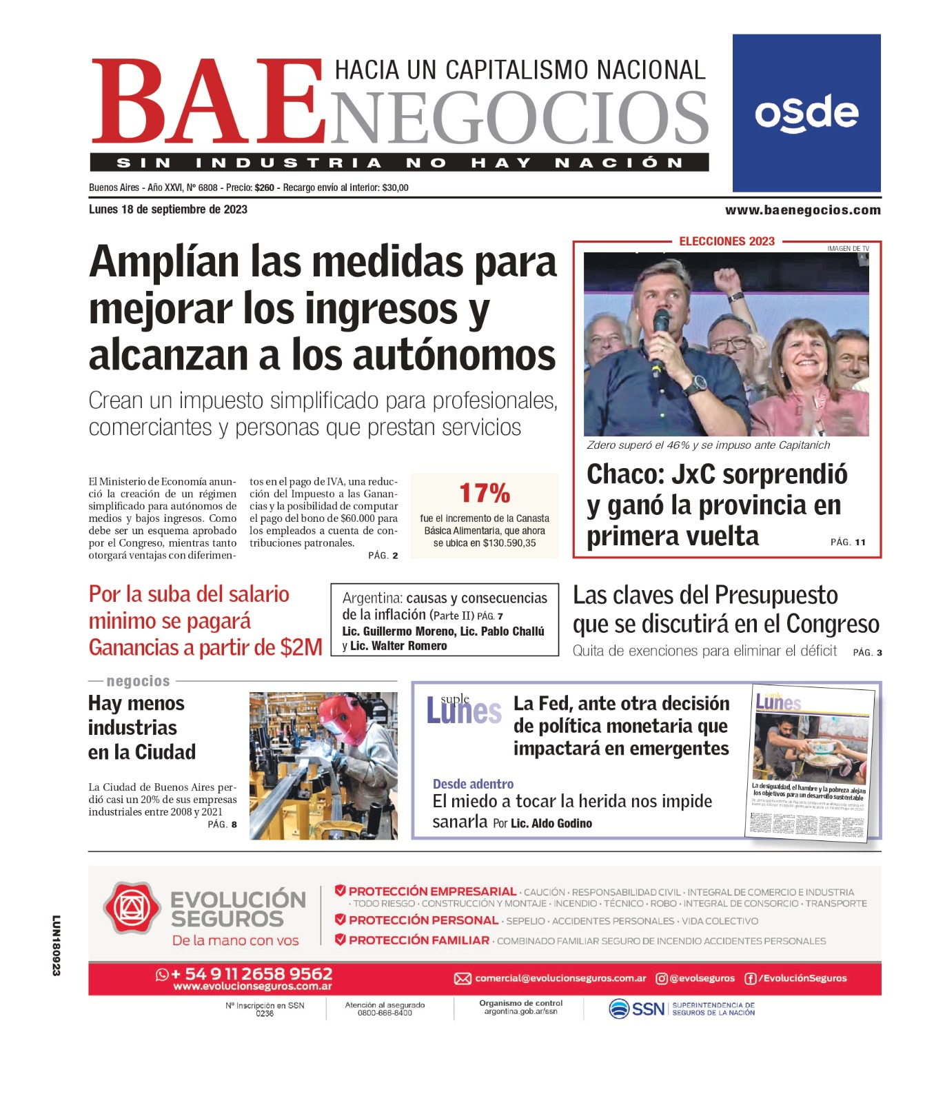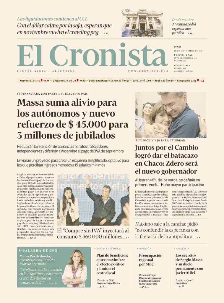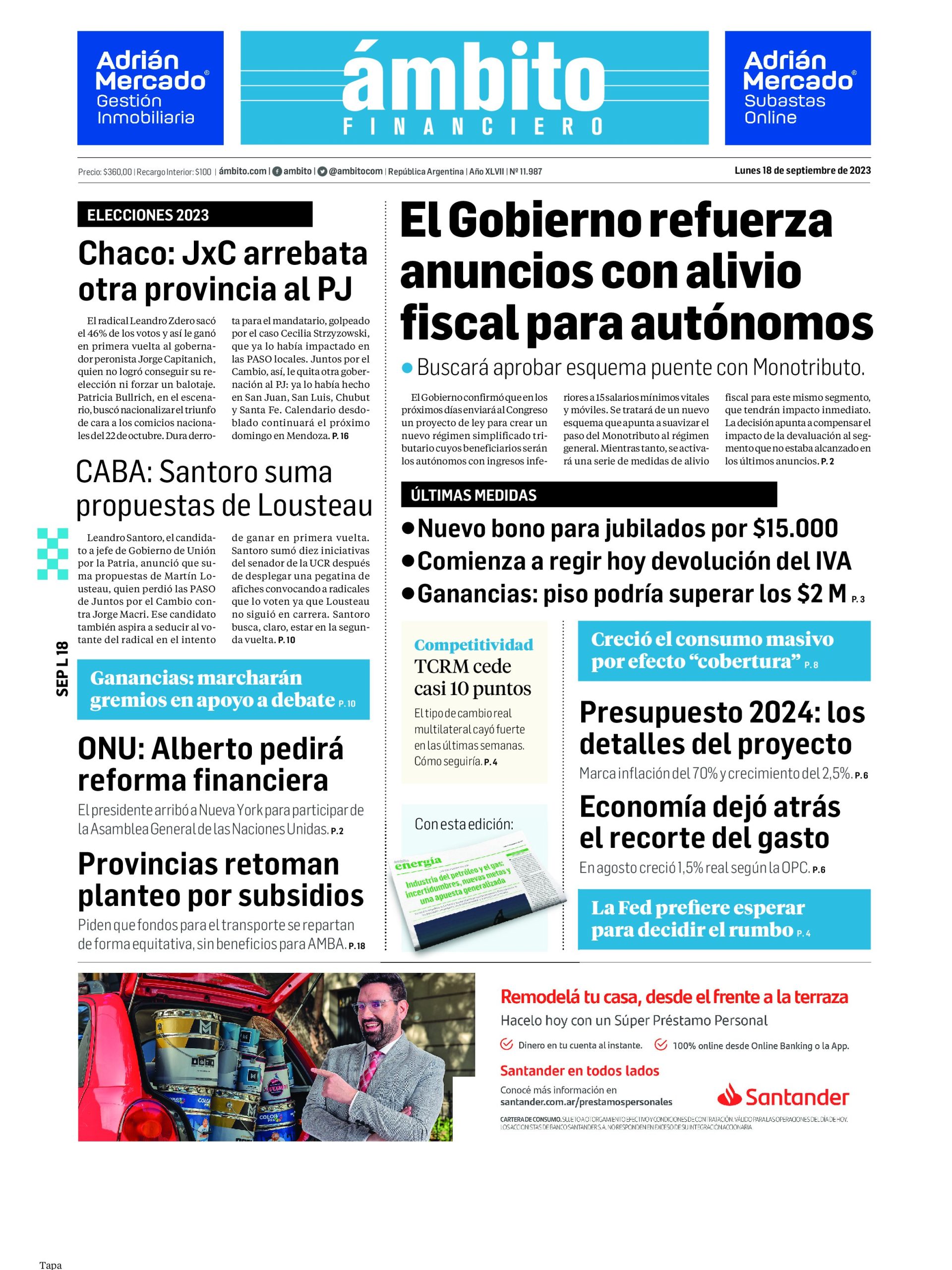 18-Sept Buenos Días Suscriptores. Tapa de Diarios Financieros