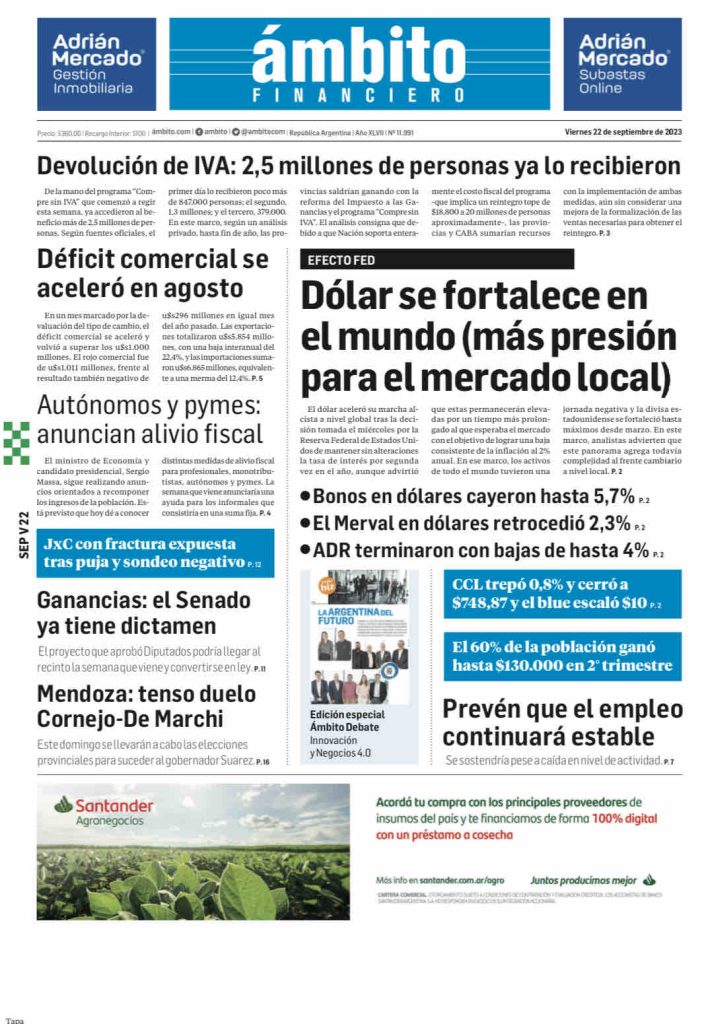 22-Sept Buenos Días Suscriptores. Tapa de Diarios Financieros