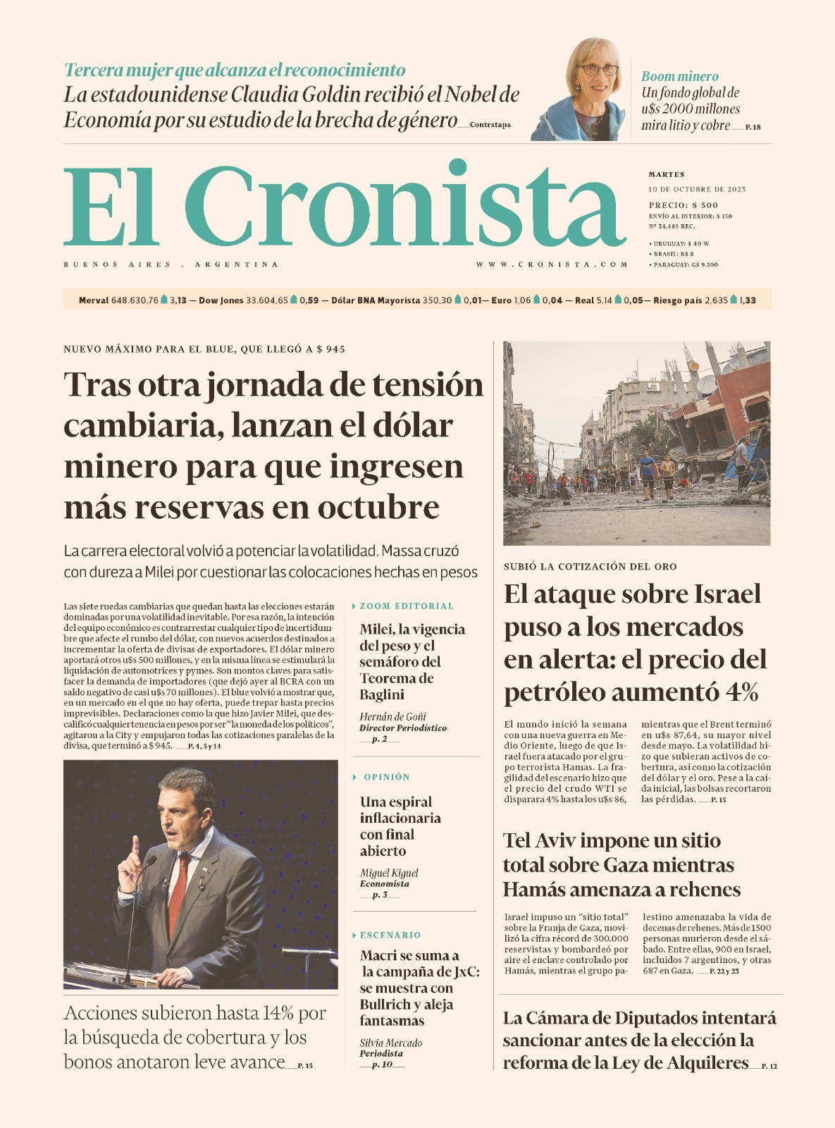 10-Oct Buenos Días Suscriptores. Tapa de Diarios Financieros