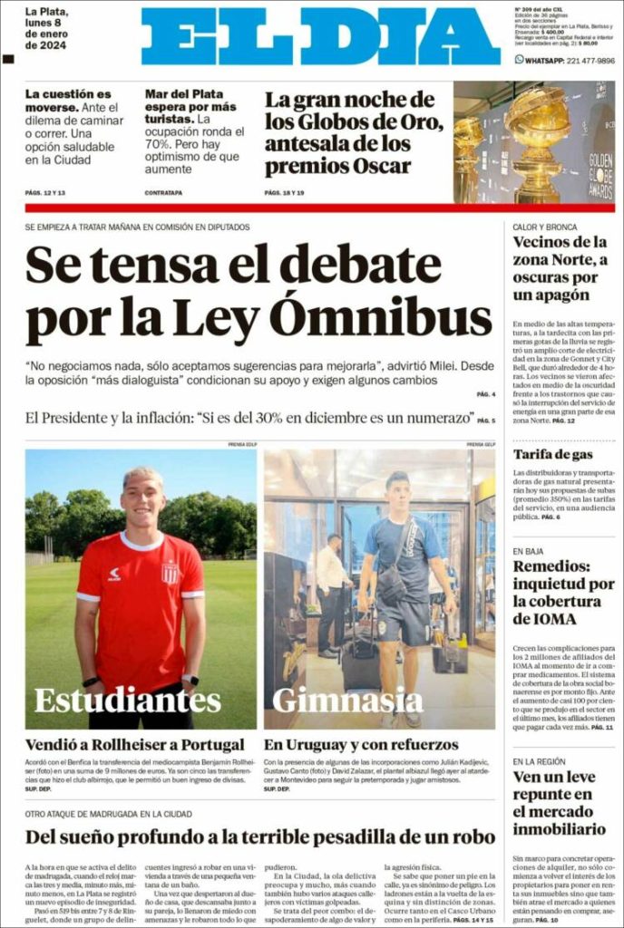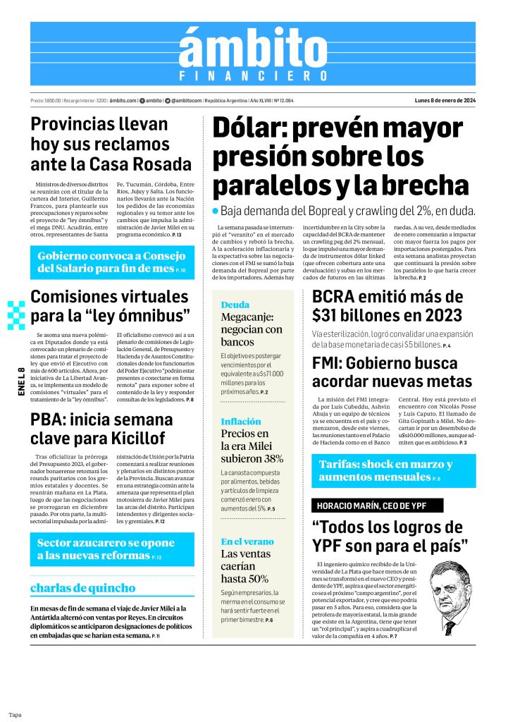 🇦🇷🧉🇦🇷 08-ENE-2024: Buenos Días Suscriptores. Tapa de Diarios Financieros