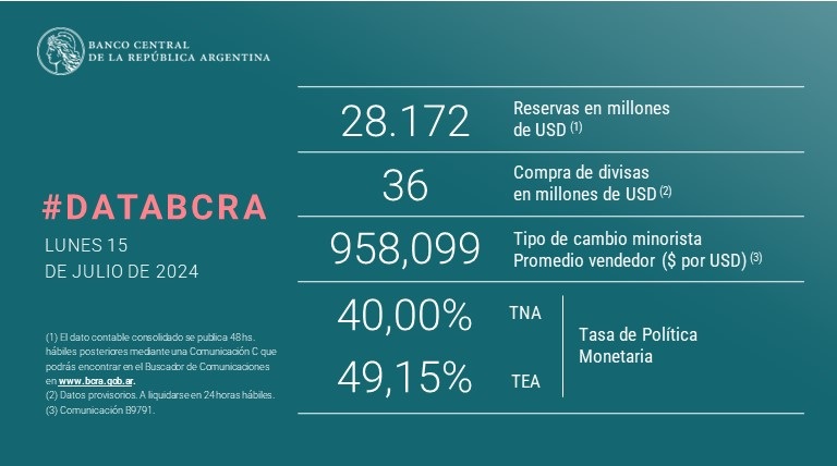💵🏦😧RESERVAS en el BCRA: Variaciones del 15-JUL