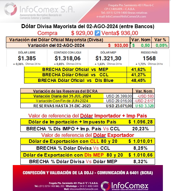 📌💵😱 02-AGO-2024: MULC-Dólar Divisa, ↗️ entre Bancos 🤔 Sube el Riesgo País y Rebotan los Dólares Financieros