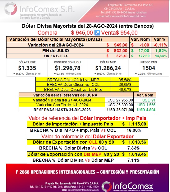 28-AGO-2024: MULC-Dólar Divisa, ↗️ entre Bancos 🤔 Mercado expectante con la eliminación del IMP. PAÍS