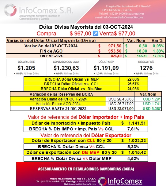 03-OCT-2024: MULC-Dólar Divisa, ↗️ entre Bancos 🤔 BRECHAS: sigue a la baja