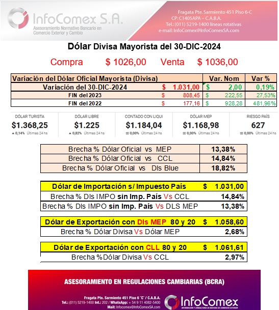 30-DIC-2024: MULC-Dólar Divisa, ↗️ entre Bancos 🤔 Así va cerrando el las brechas en el último día cambiario del 2024