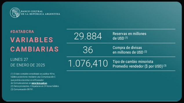 📌 Reservas en el BCRA en 💵al 27-ENE-2025