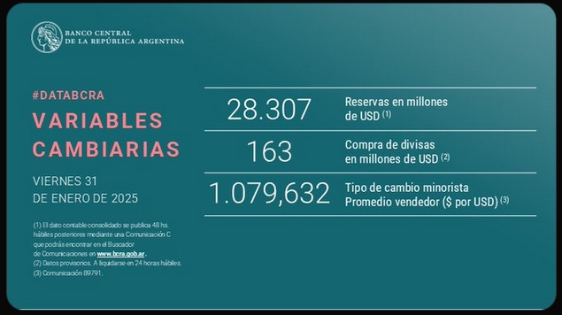📌 Reservas en el BCRA en 💵al 31-ENE-2025
