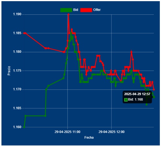 📌 13,00hs Cotización del Dólar Divisa: Leve baja con relación a la apertura, pero se opera en el rango de un piso $ 1160,00 y $ 1180,00 de techo, técnico