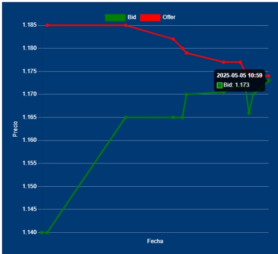 📌 11,00 Inicio Cotización del Dólar Divisa: Cotizaciones de referencia entre los rango de $ 1165,00 y $ 1175,00 pero con pocas operaciones