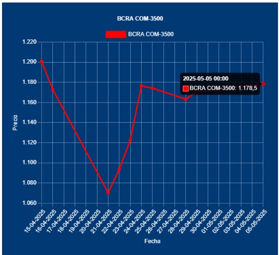 📌 $ 1.178,50 COTIZACIÓN 💵 COM A 3500 del 05-MAY-2025 del BCRA