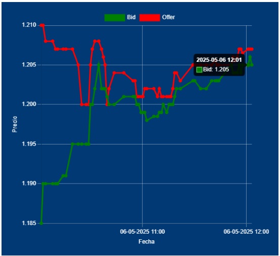 📌 11,00hs Cotización del Dólar Divisa: $ 1200,00 está buscando definir tendencia.