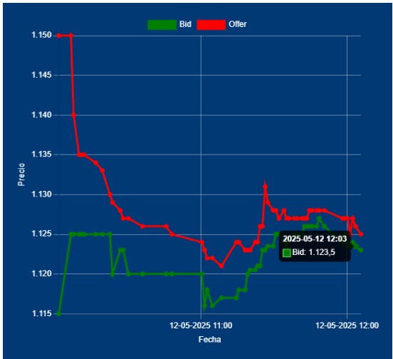 📌 12,00hs 📈Cotización del Dólar Divisa: $ 1120,00 y $ 1130,00 Se estaría consolidando entorno a 1120,00 un piso (soporte técnico)