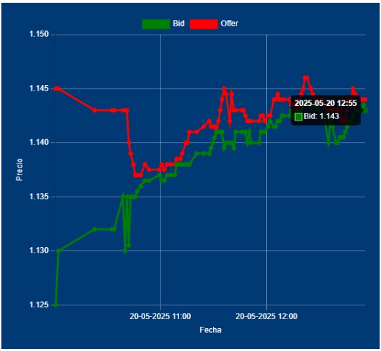 📌 13,00hs 📈 Cotización del Dólar Divisa: $ 1143,00 – 1144,00 entre Bancos. Detectamos el BCRA, está intercediendo en forma indirecta, en otros mercados financieros
