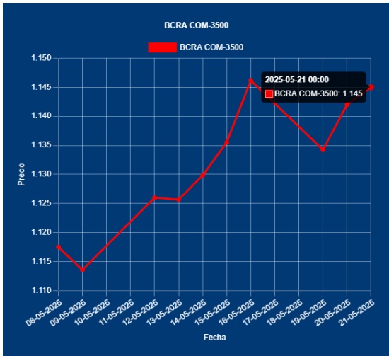 📌 $ 1.145,00 📈COTIZACIÓN 💵 COM A 3500 del 21-MAY-2025 del BCRA ¿cómo se obtiene?