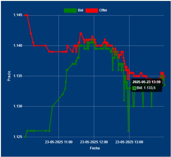 📌 14,00hs 📉 Cotización del Dólar Divisa: $ 1133,00 – 1135,00 entre Bancos. Sigue volátil, con oscilaciones a la baja. Sugerencia Cambiaria