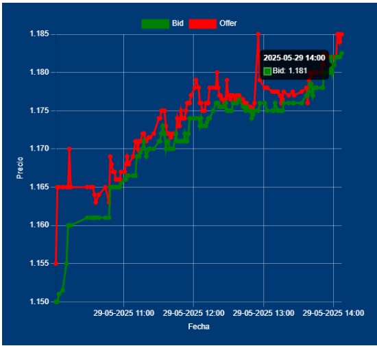 📌 13,00hs 📈 Cotización del Dólar Divisa: Estaría estabilizándose entorno de $ 1175,00 pero tocó 1185,00