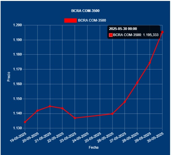 📌 $ 1.195,33 📈COTIZACIÓN 💵 COM A 3500 del 30-MAY-2025 del BCRA ¿cómo se obtiene?