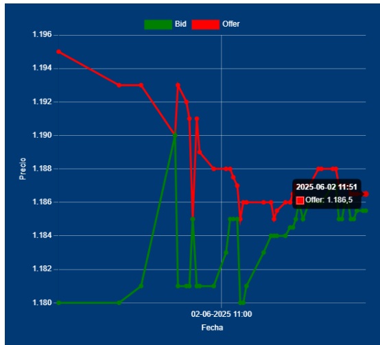 📌 12,00Hs 📉 Cotización del Dólar Divisa: 1184,50 – 1186,50 Está buscando estabilizarse. El rango operativo, estaría en 1180 – 1190 por ahora