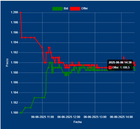 📌 13,00Hs 🟰 Cotización del Dólar Divisa: 1189,00 entre Bancos. 🤔Sin cambios. Sigue comprador de fondo, y monitoreado por el BCRA.