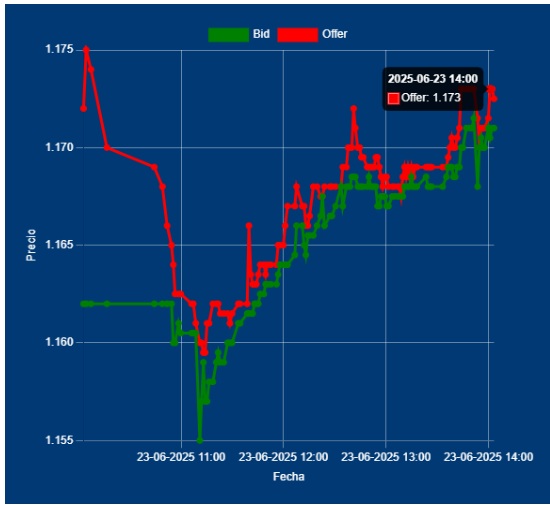 📌 14,00Hs 📈Cotización del Dólar Divisa: 1171,00 – 1173,00 entre Bancos. Se define la tendencia, en la última hora del MULC. Hasta ahora, consolidó la suba, sin prisa pero sin pausa